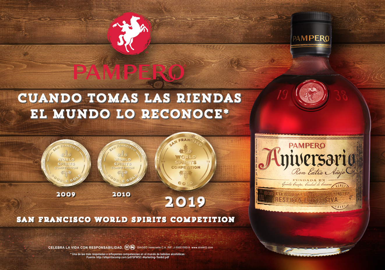Pampero, conocido por establecer los estándares de producción de ron en Venezuela y por ser el primer ron añejo* vuelve a dejar en alto el nombre de nuestro país sumando nuevos reconocimientos con todas sus variantes. Este año, Pampero Aniversario se vuelve a llevar medalla de oro, mientras que Pampero Oro y Pampero Selección obtuvieron medalla de plata, en el San Francisco World Spirit Competition.