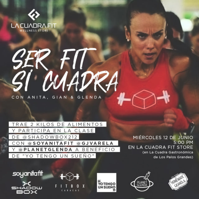 La dinámica con Anita Petrosini (@soyanitafit), Glenda Pietri (@planetglenda), y Giancarlo Varela (@gjvarela), se realizará en los espacios de La Cuadra Fit (@lacuadrafitstore), ubicada en La Cuadra Gastronómica, Los Palos Grandes. Esta enérgica y, a su vez, generosa actividad, se llevará a cabo el día miércoles, 12 de junio, a las 5:00 de la tarde.