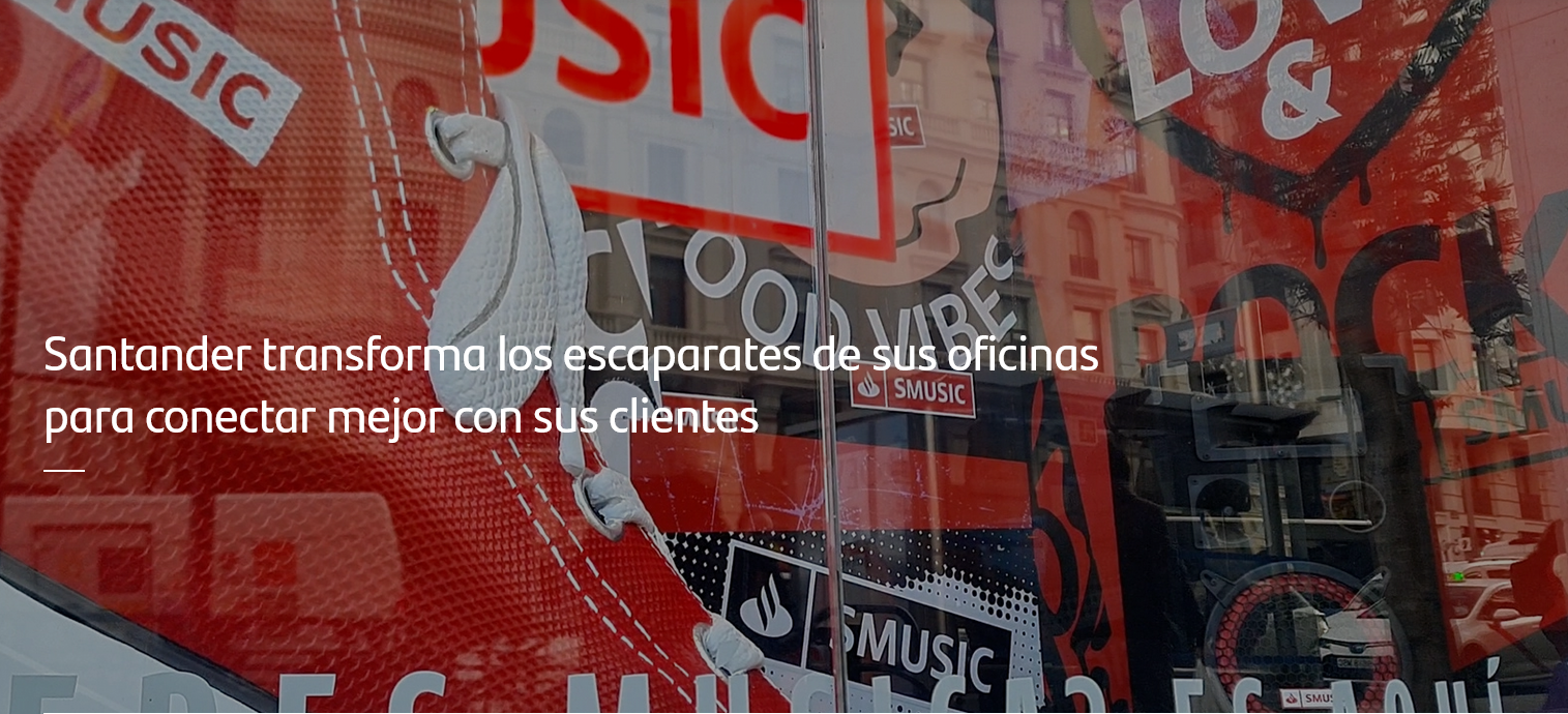 Banco Santander está cambiando los escaparates de sus oficinas con el objetivo de hacerlos más atractivos y poder conectar mejor con las personas y el entorno. Dentro de este proyecto, acaba de estrenar nuevo escaparate en la oficina de Gran Vía 80, en Madrid.